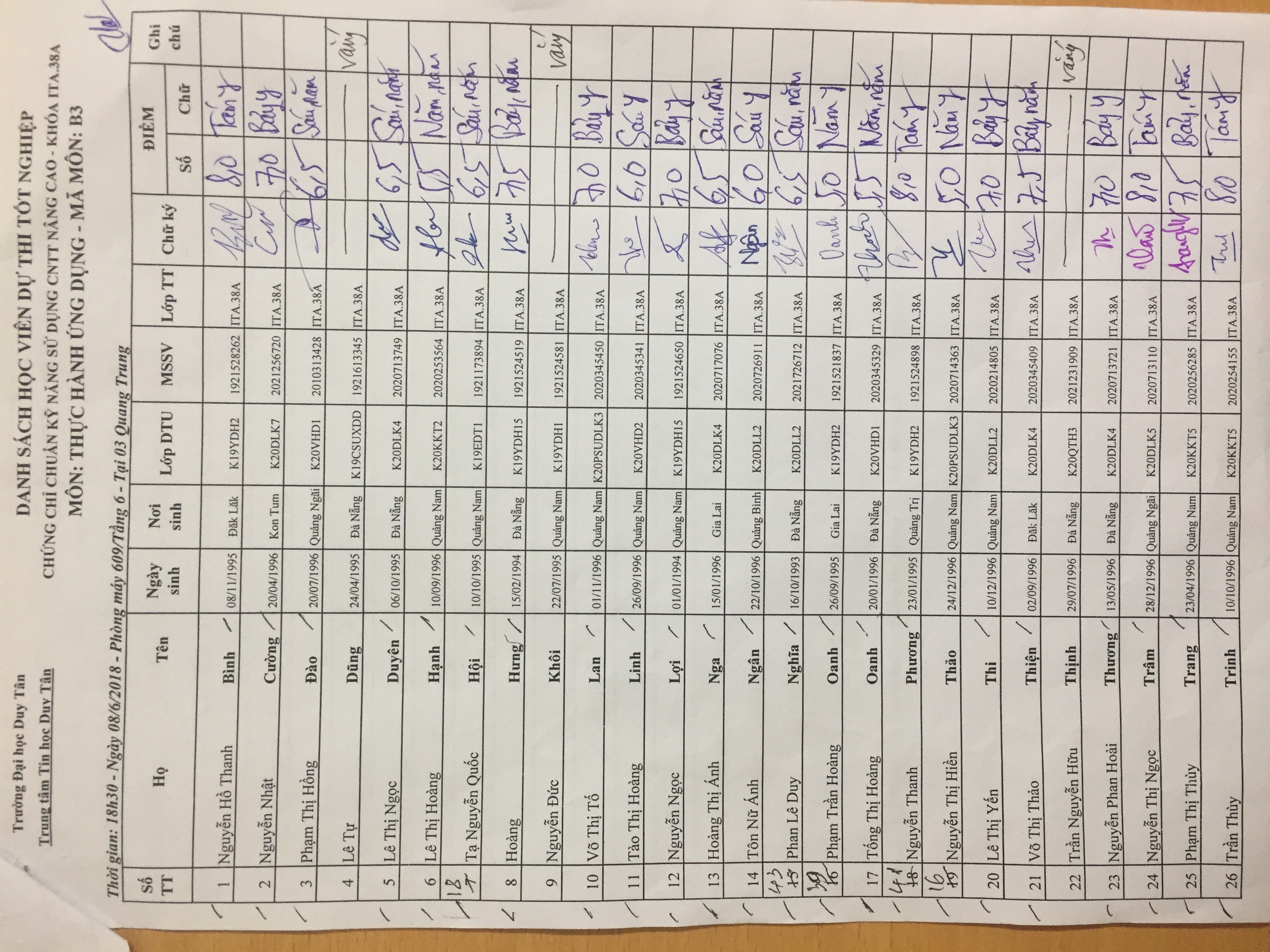 Điểm sát hạch Chứng chỉ Ứng dụng CNTT Nâng cao suất 15h00 ngày 25/01/2026