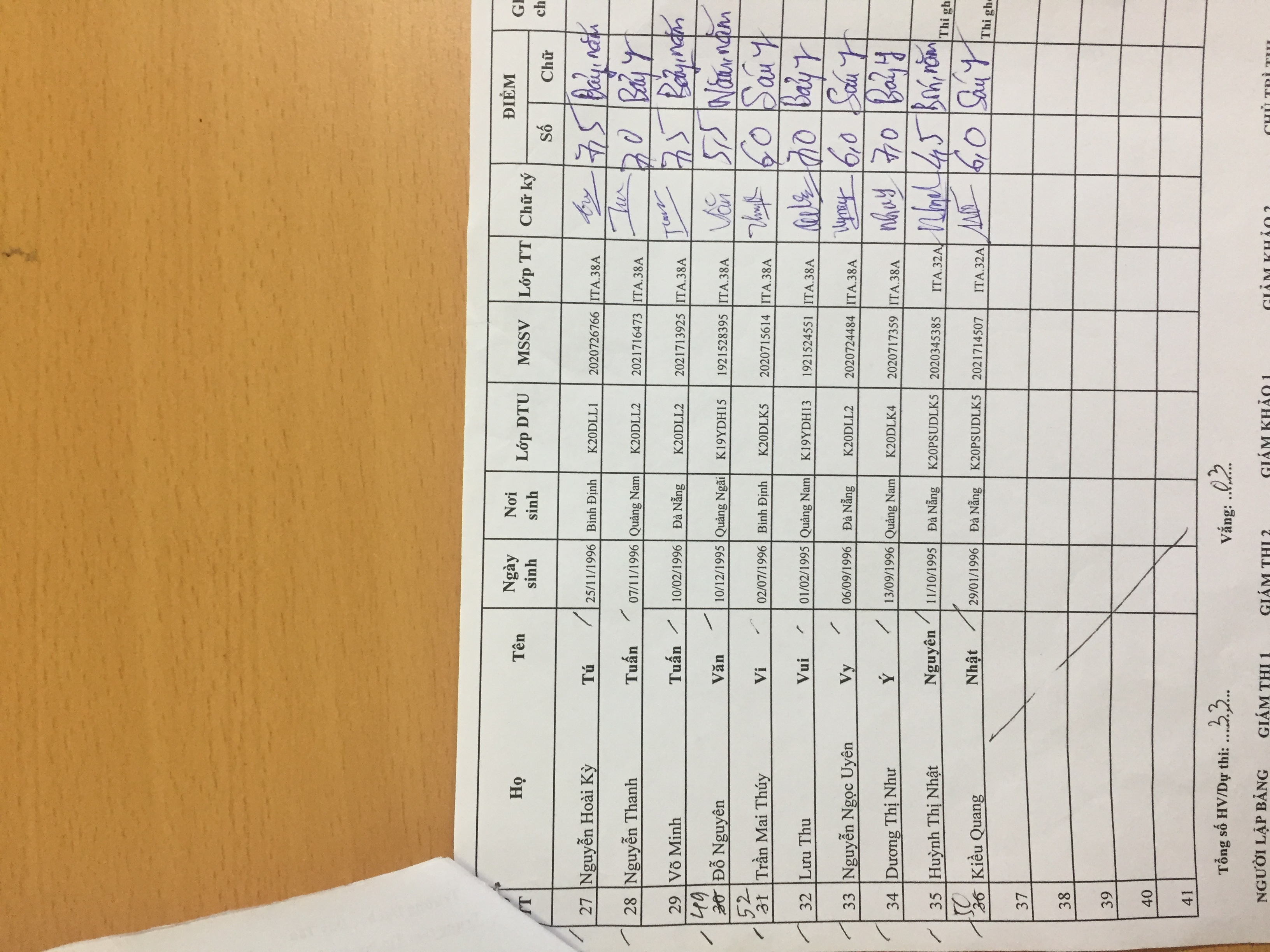 Danh sách thi