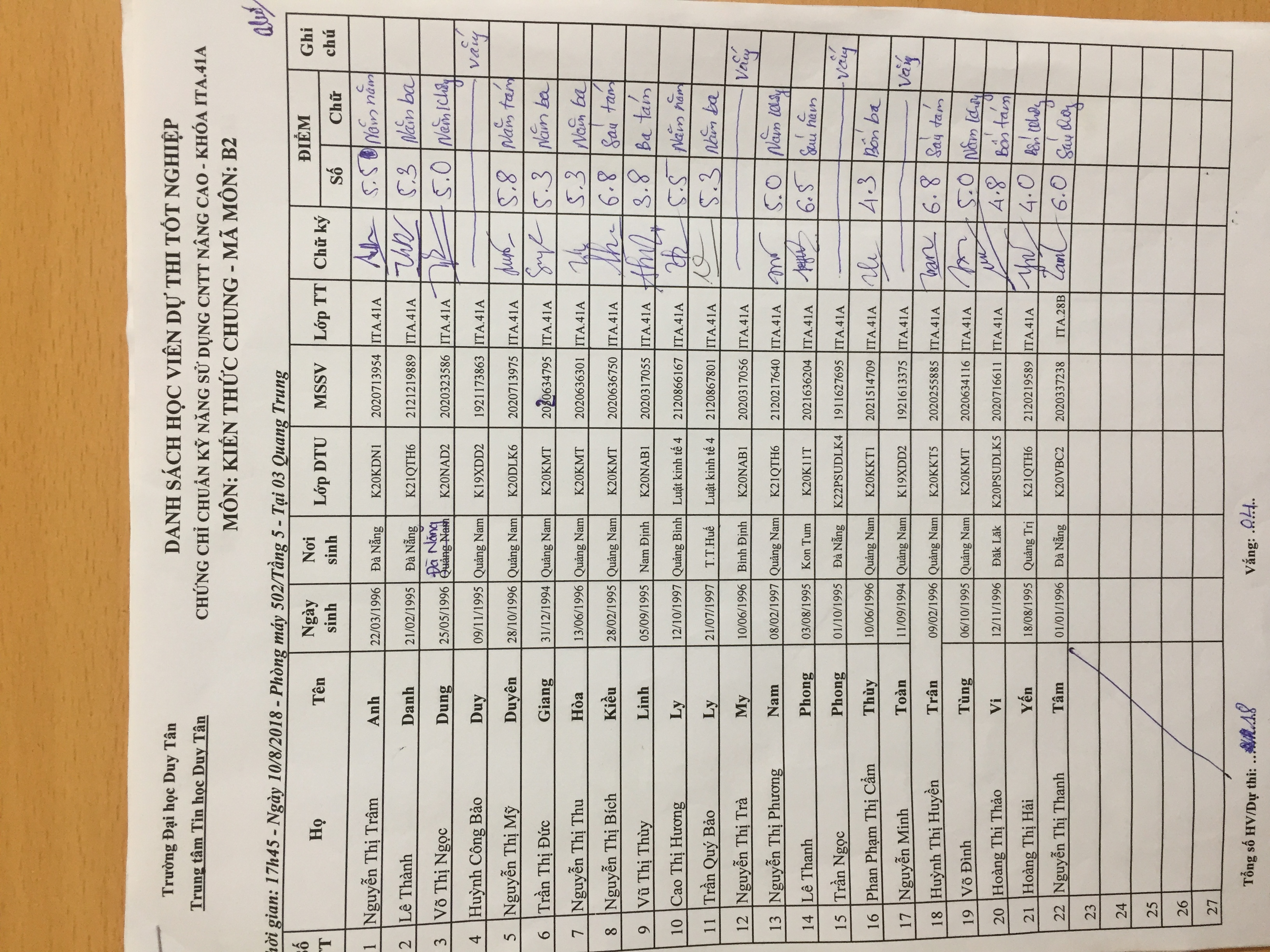 Điểm sát hạch Chứng chỉ Ứng dụng CNTT Nâng cao suất 09h00 ngày 21/12/2025