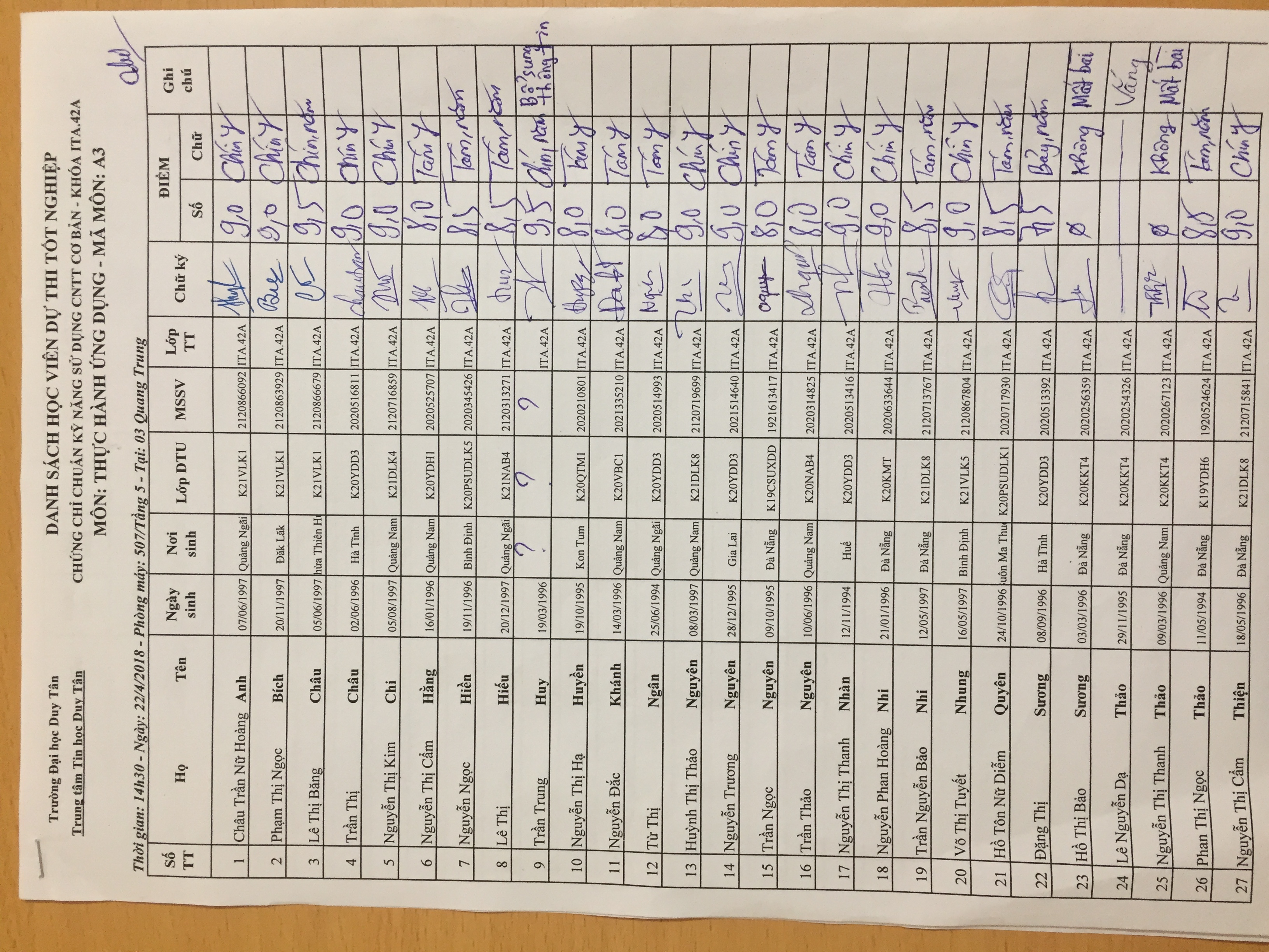Điểm sát hạch Chứng chỉ Ứng dụng CNTT Nâng cao suất 15h00 ngày 25/01/2026