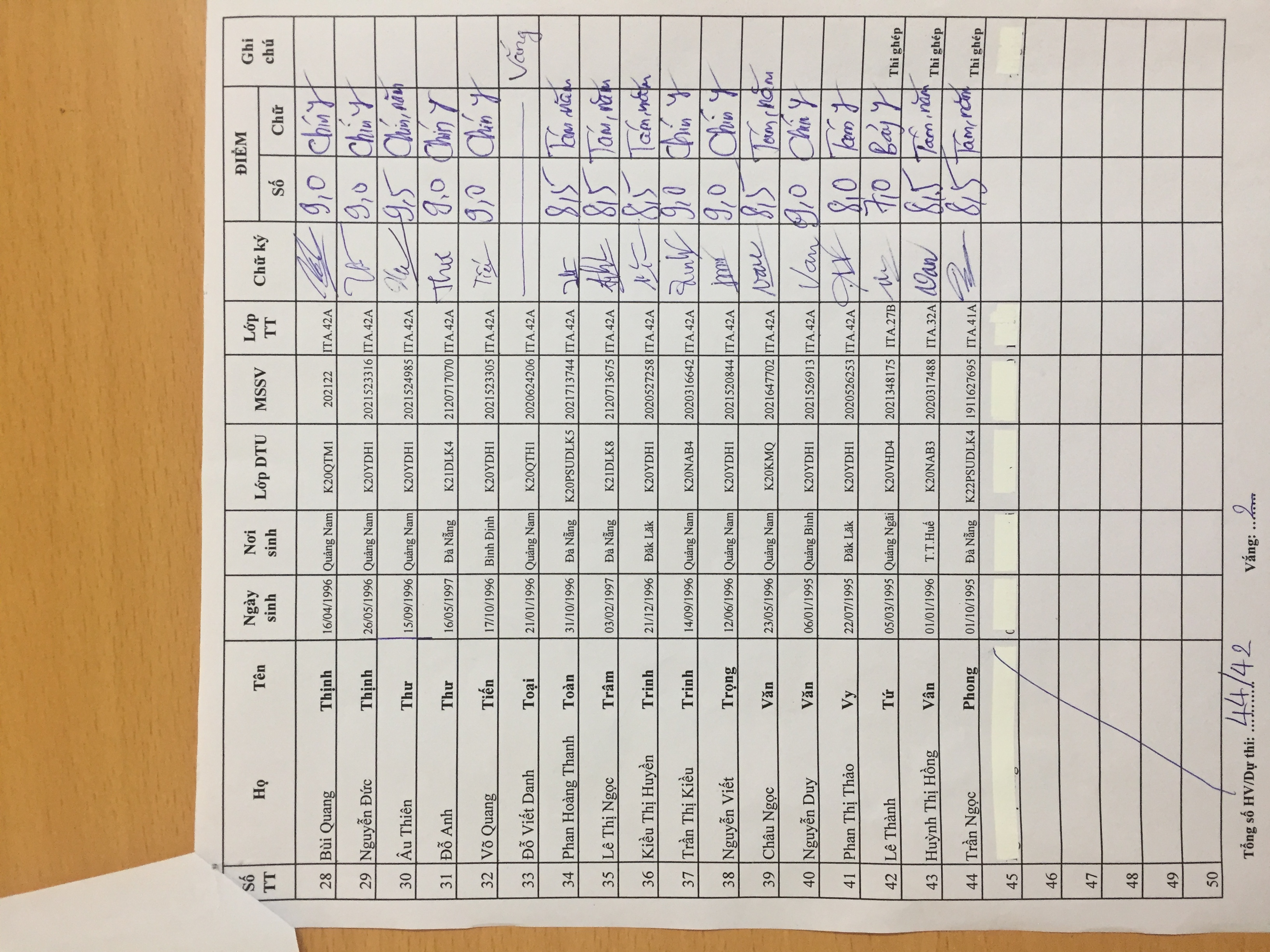 Danh sách thi