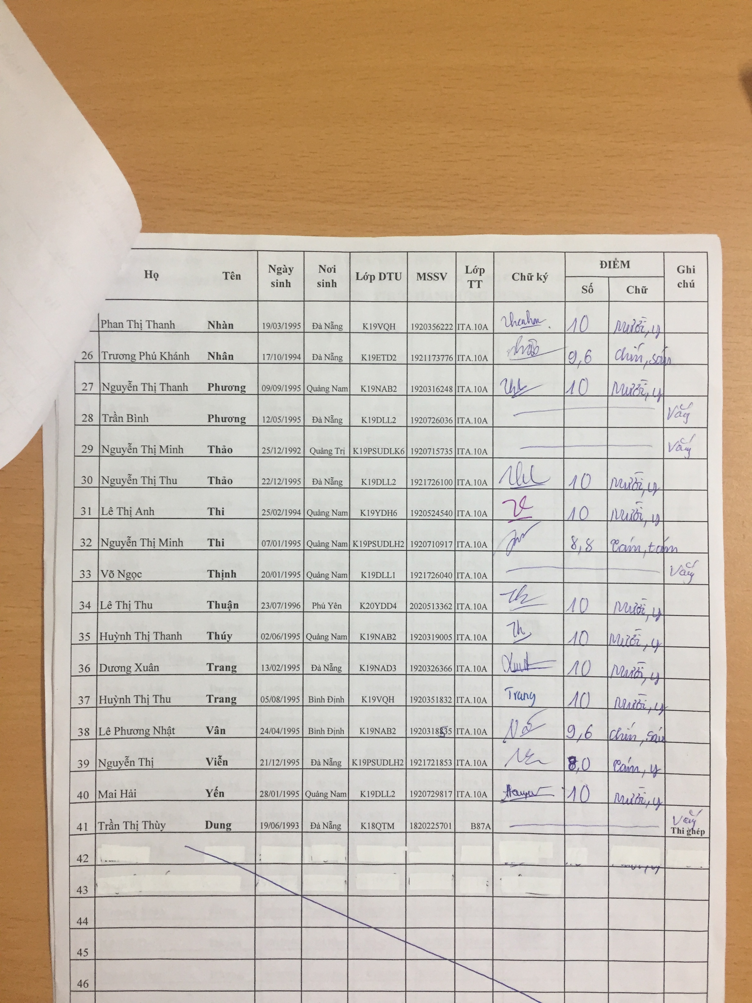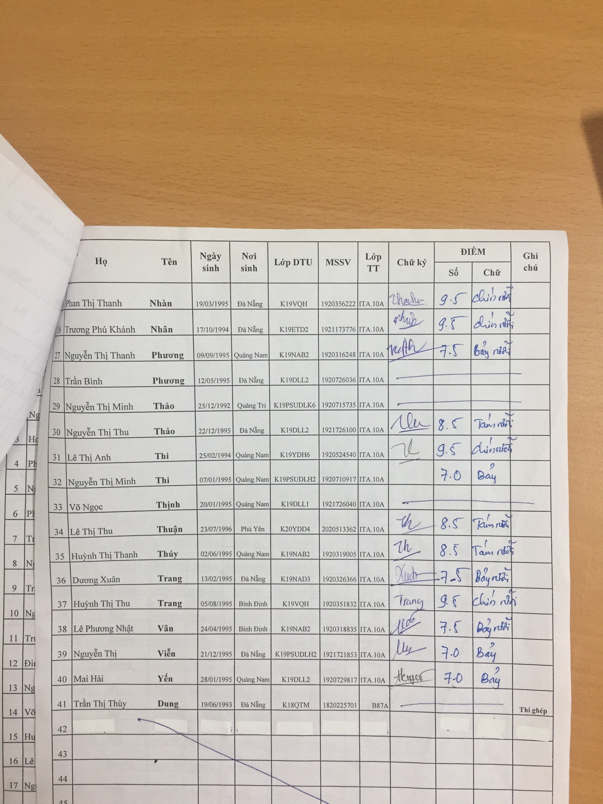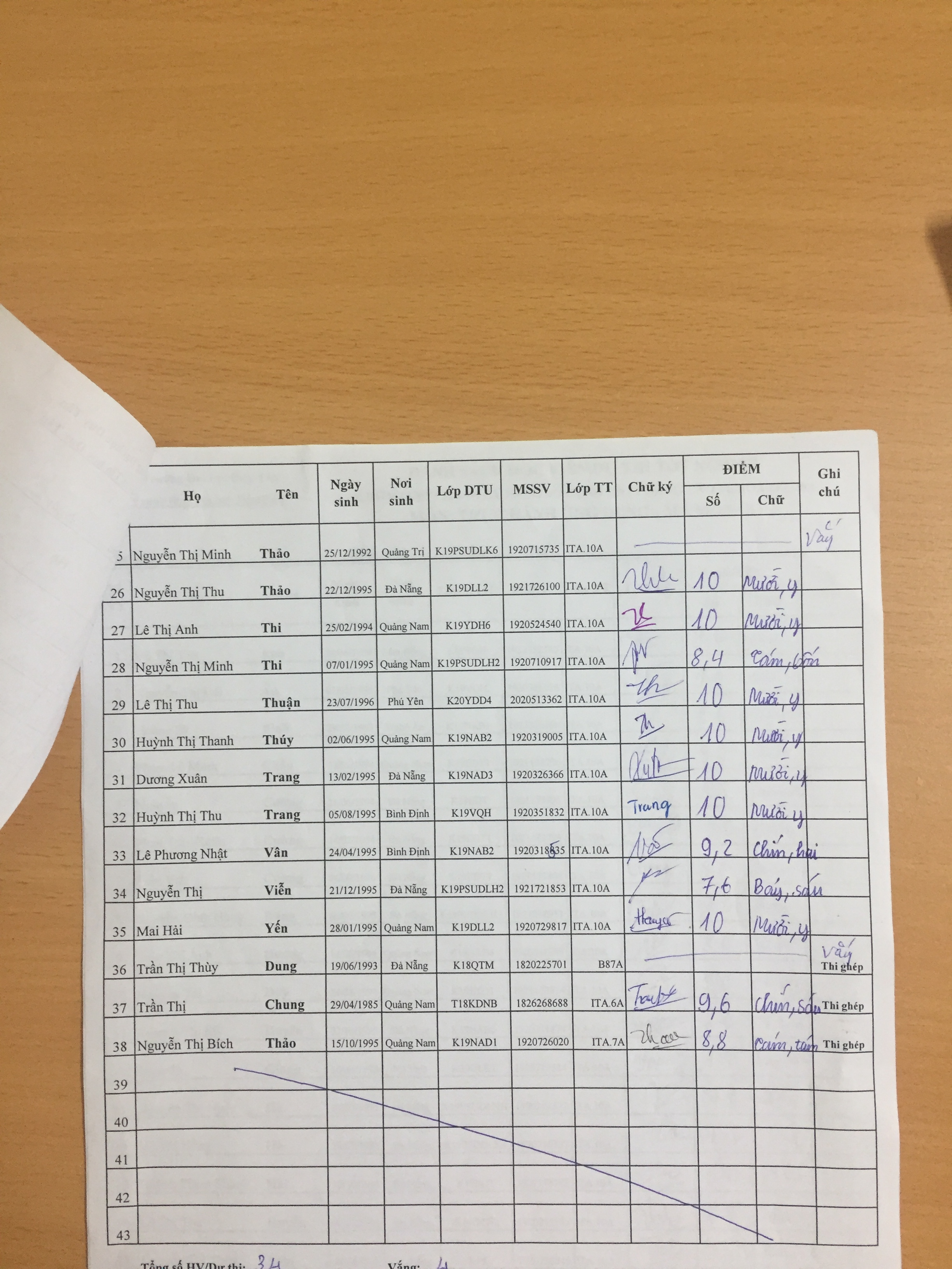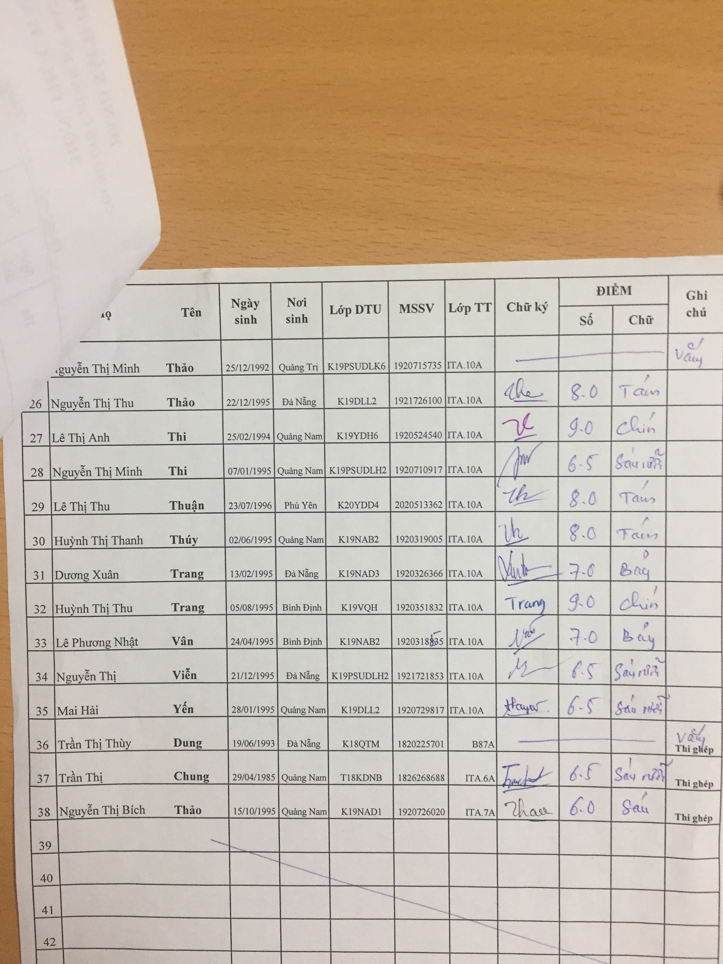 Danh sách thi