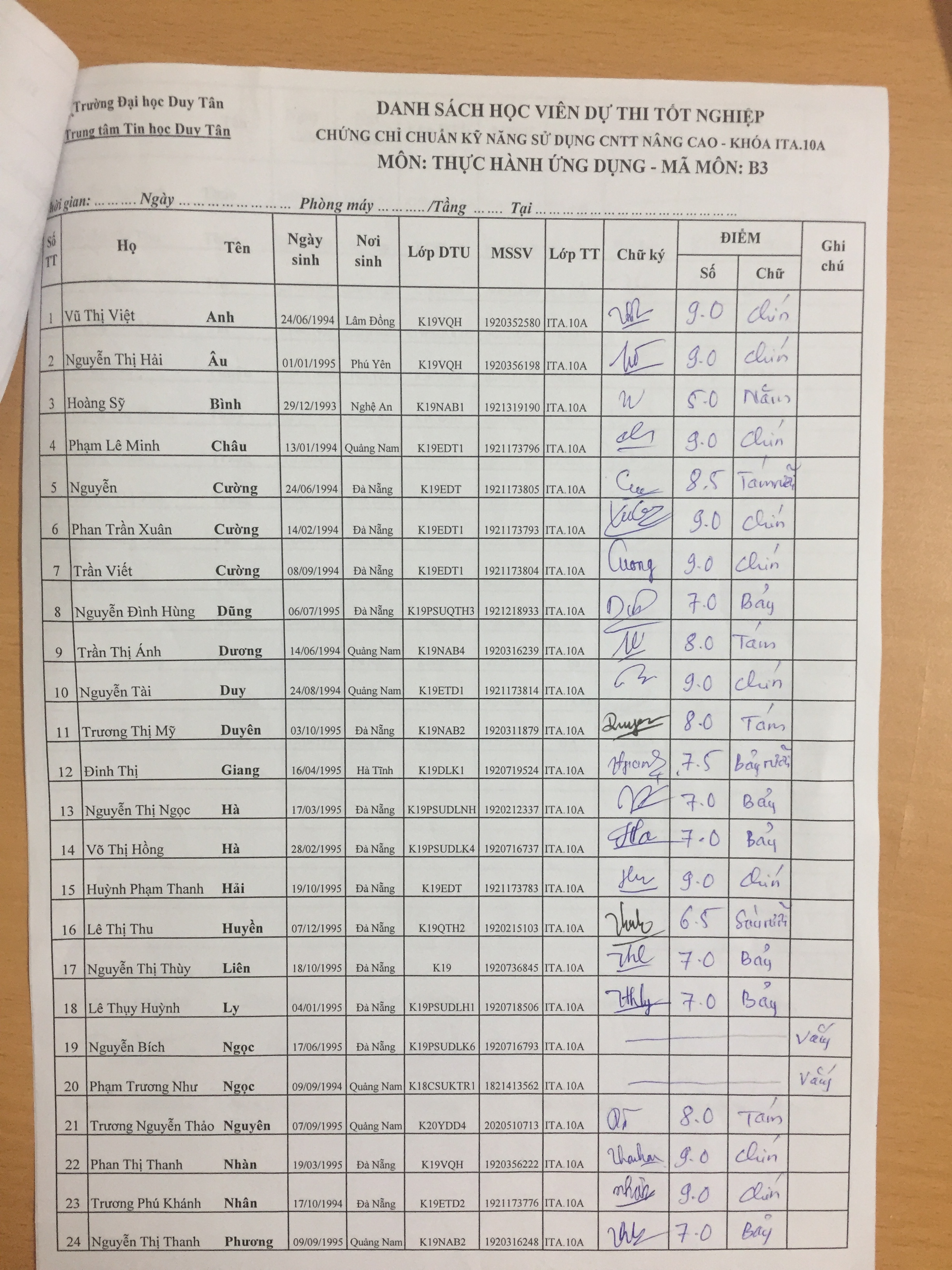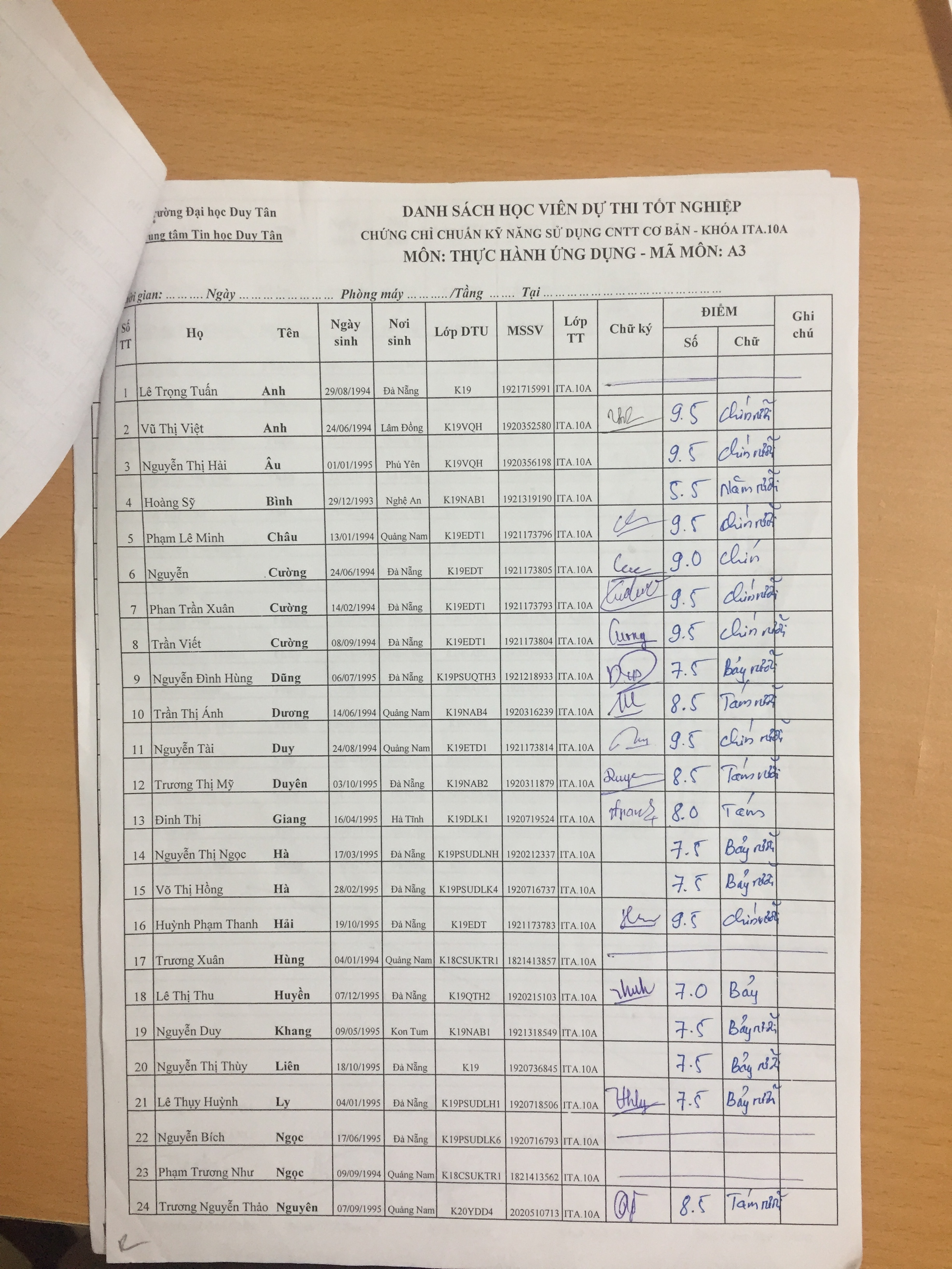 Điểm sát hạch Chứng chỉ Ứng dụng CNTT Nâng cao suất 15h00 ngày 25/01/2026