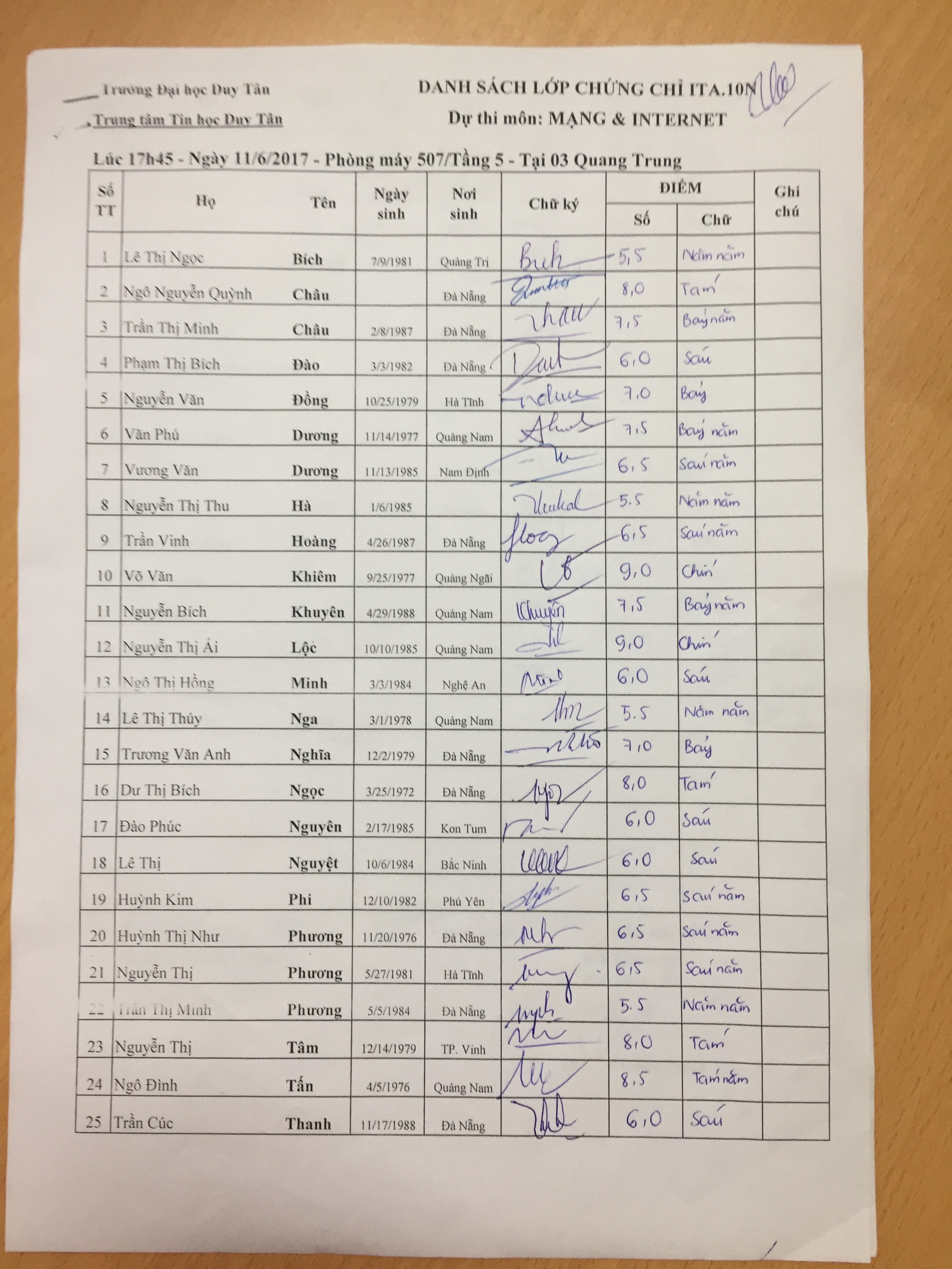 Điểm sát hạch Chứng chỉ Ứng dụng CNTT Nâng cao suất 17h45 ngày 25/01/2026