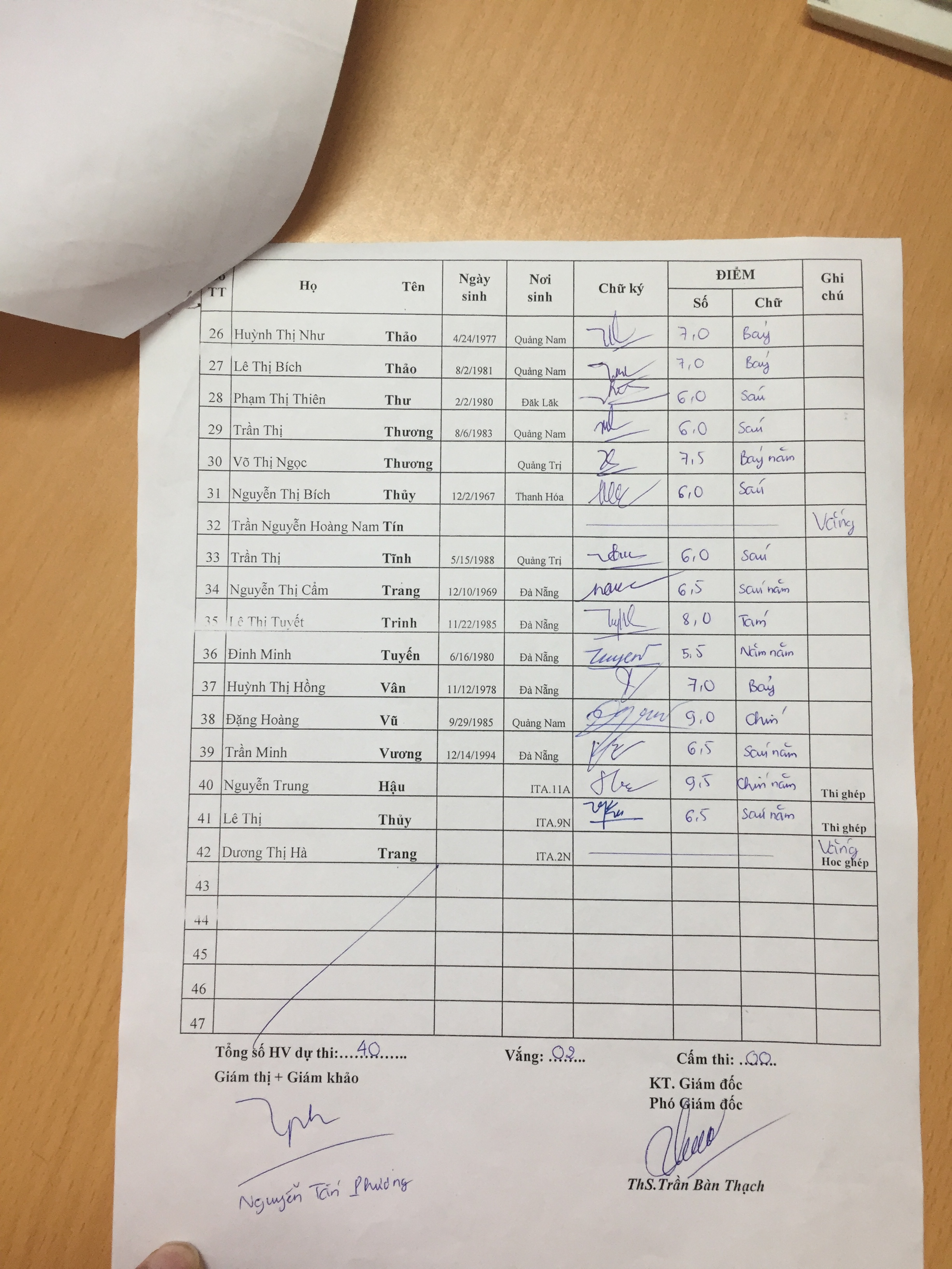 Danh sách thi