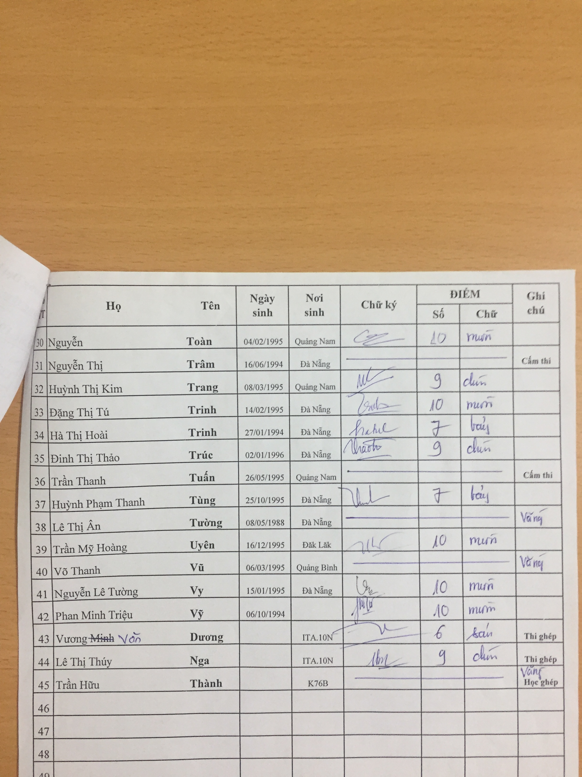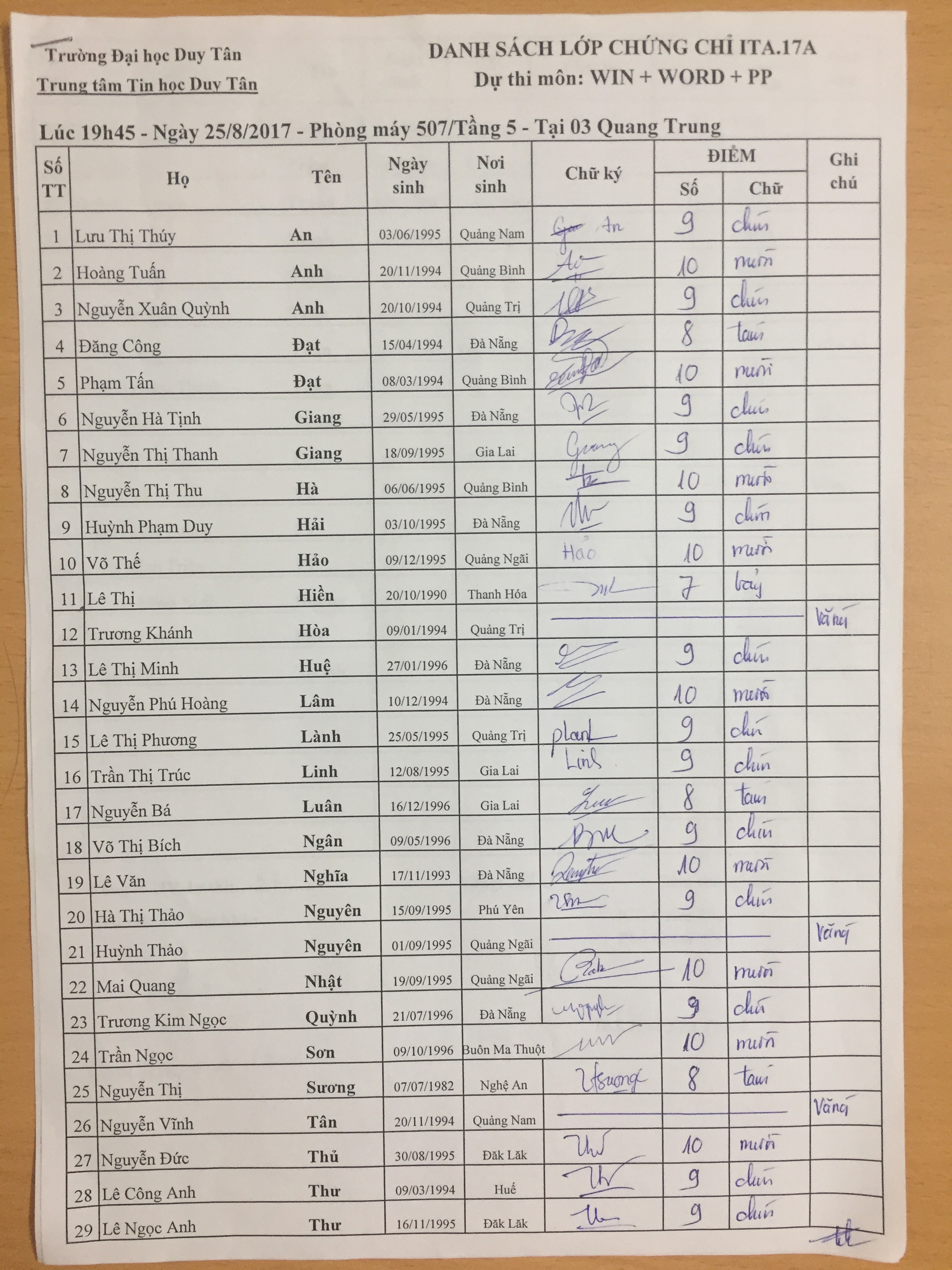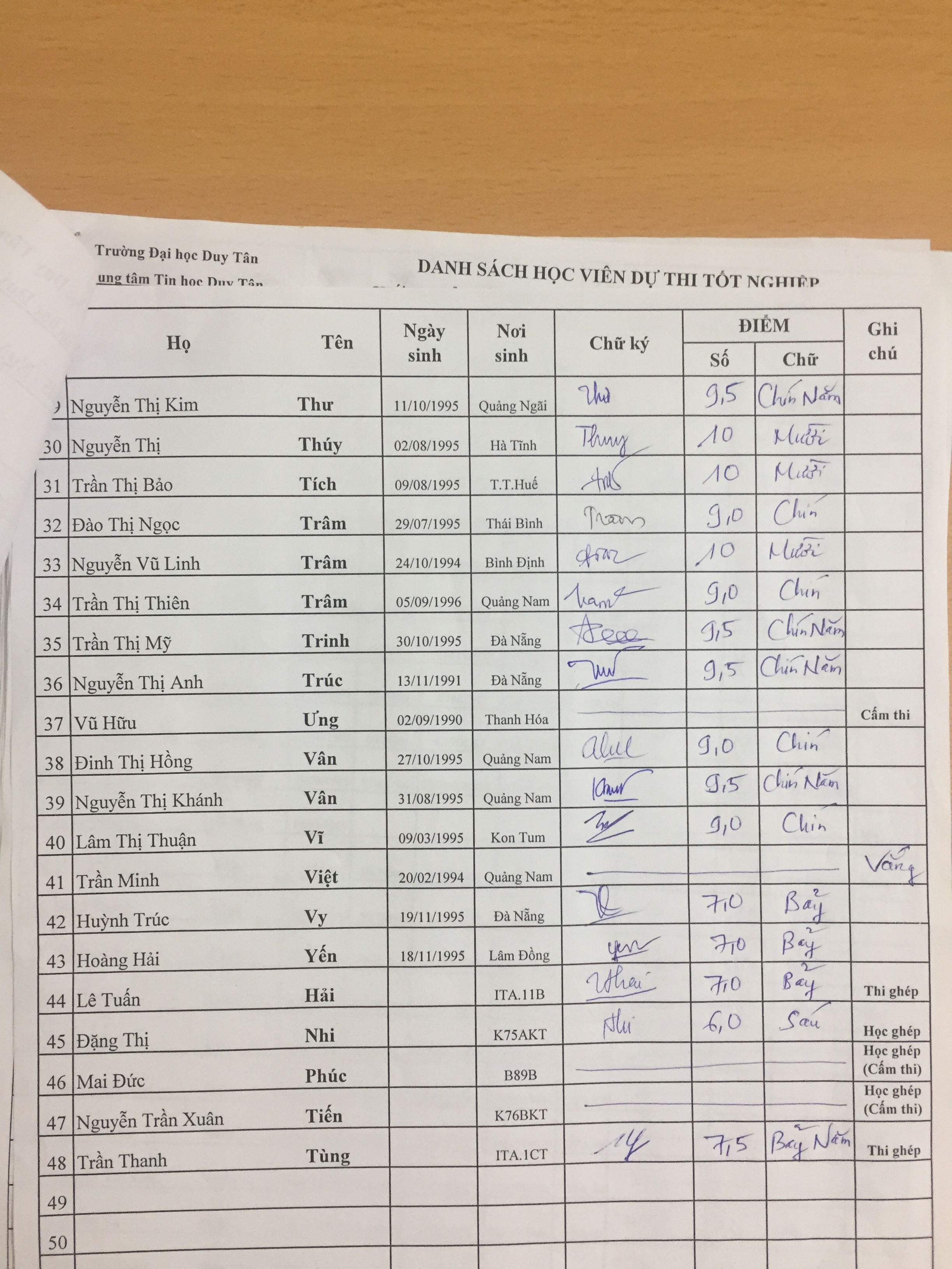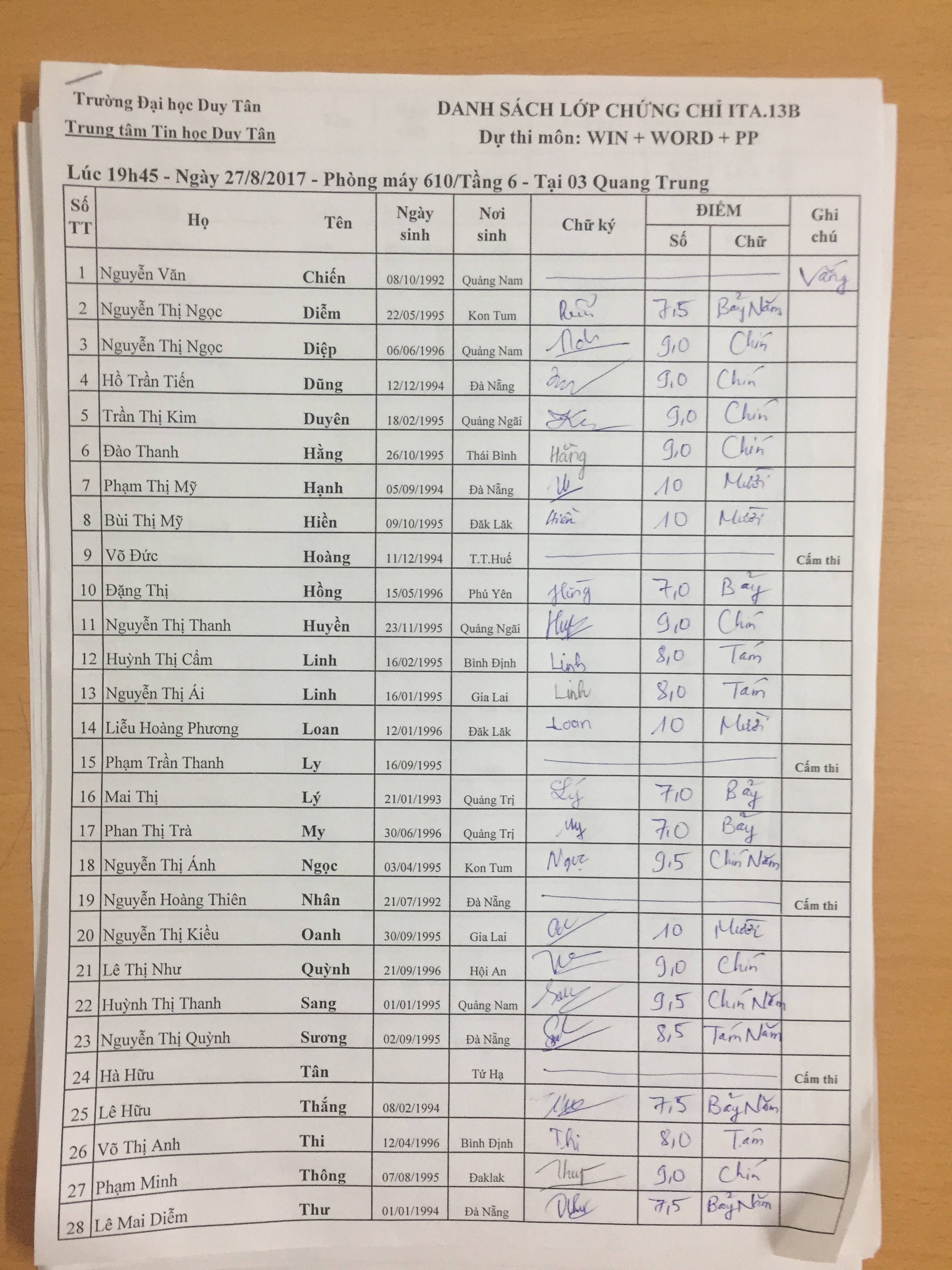 Danh sách thi