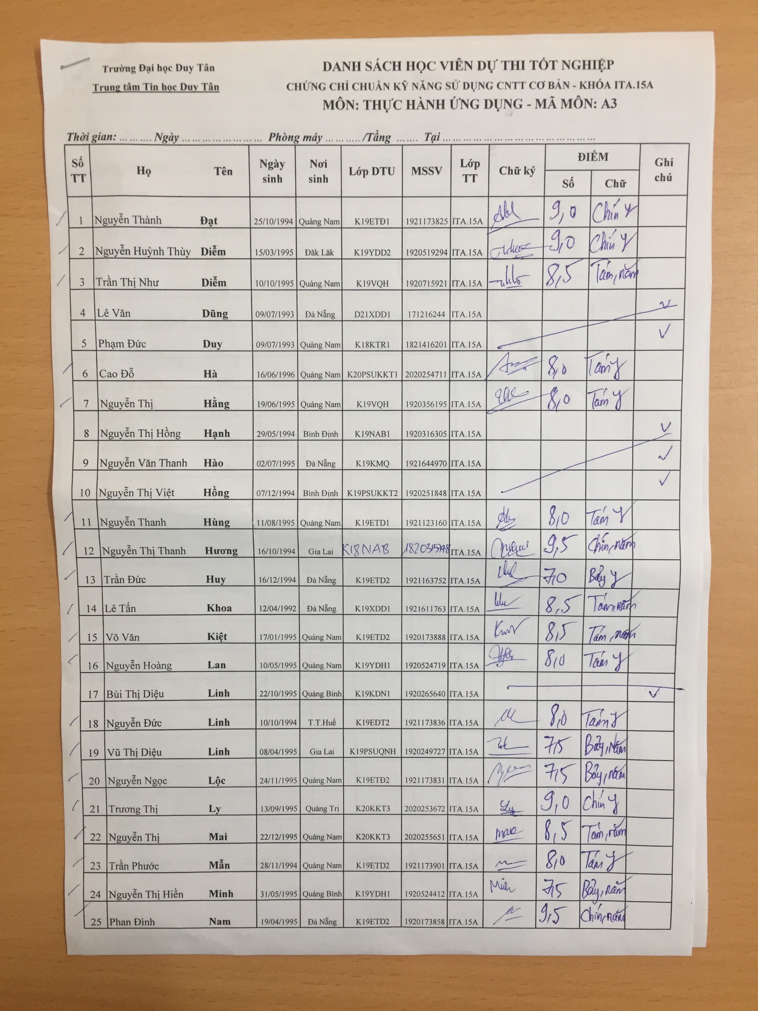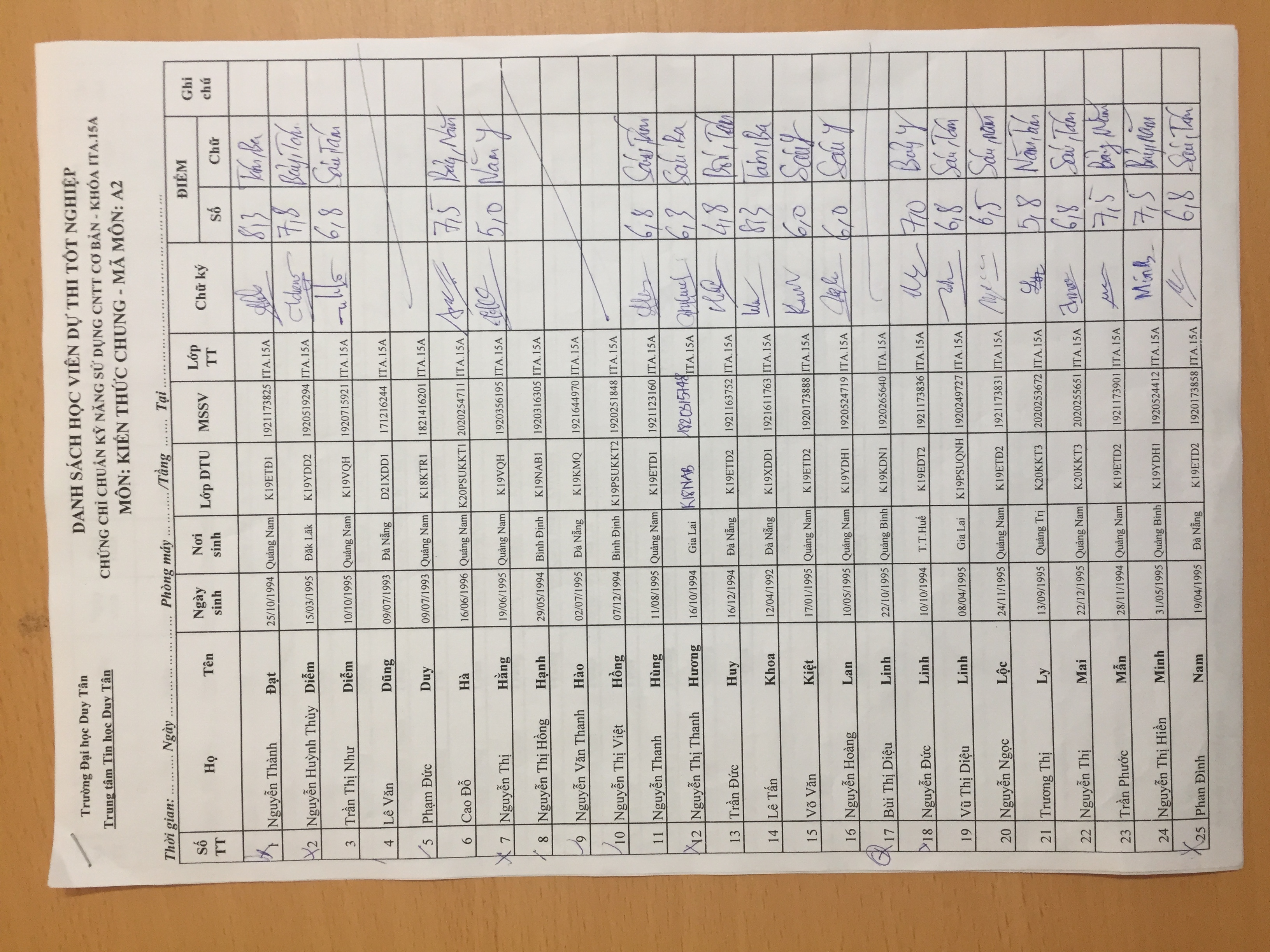 Điểm sát hạch Chứng chỉ Ứng dụng CNTT Nâng cao suất 15h00 ngày 25/01/2026