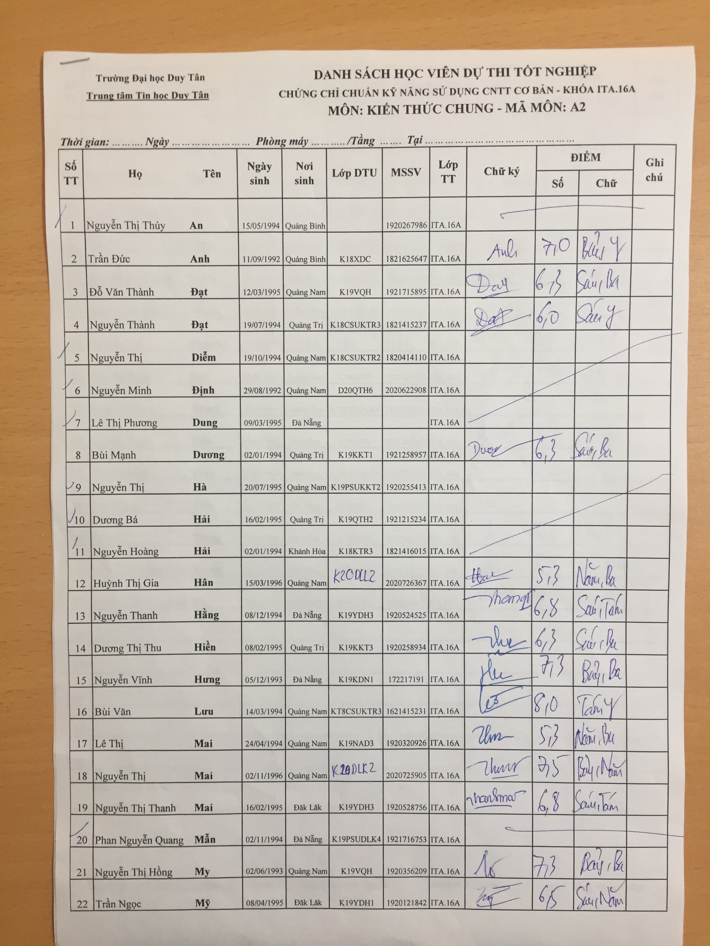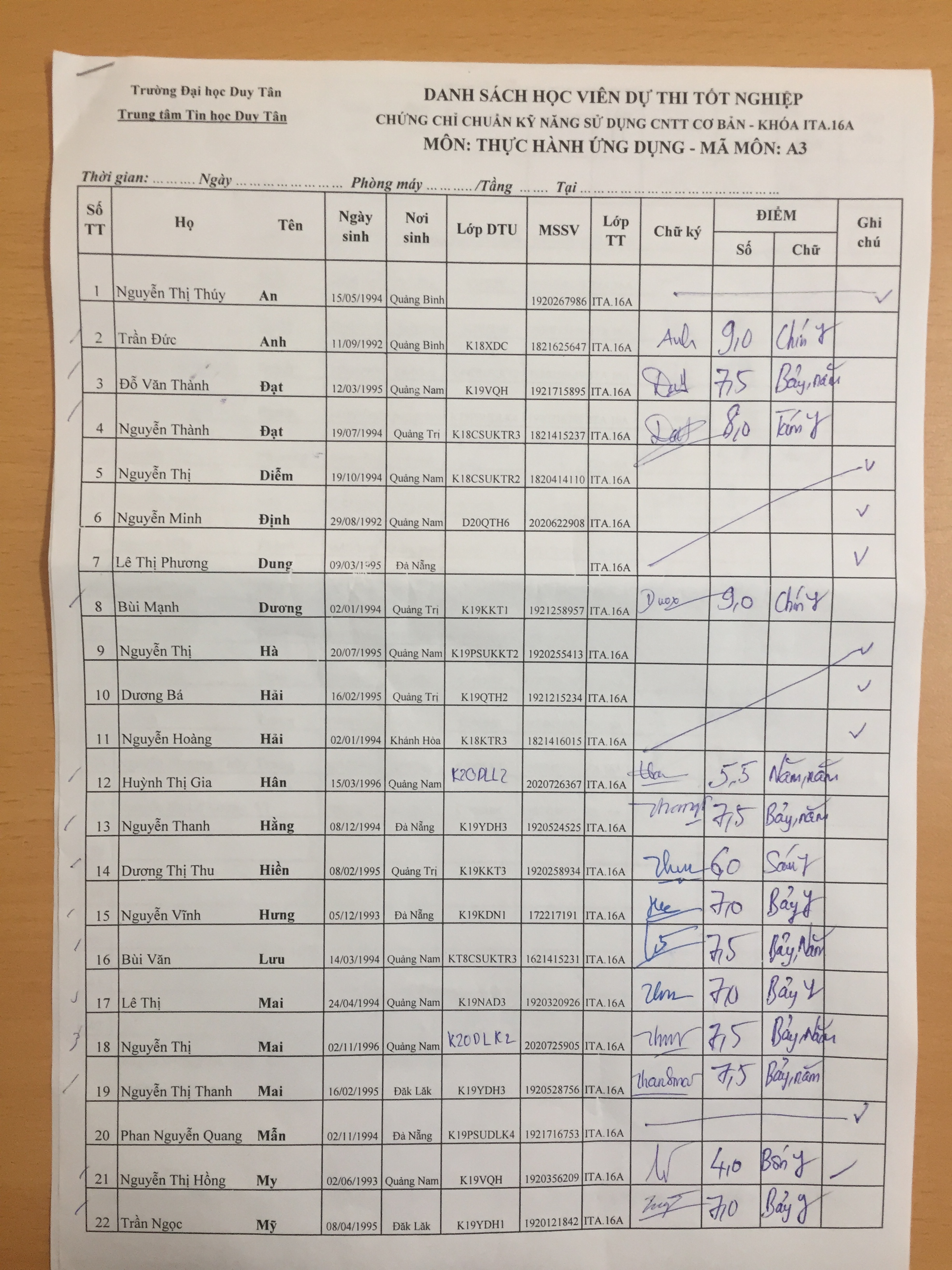 Điểm sát hạch Chứng chỉ Ứng dụng CNTT Nâng cao suất 15h00 ngày 25/01/2026