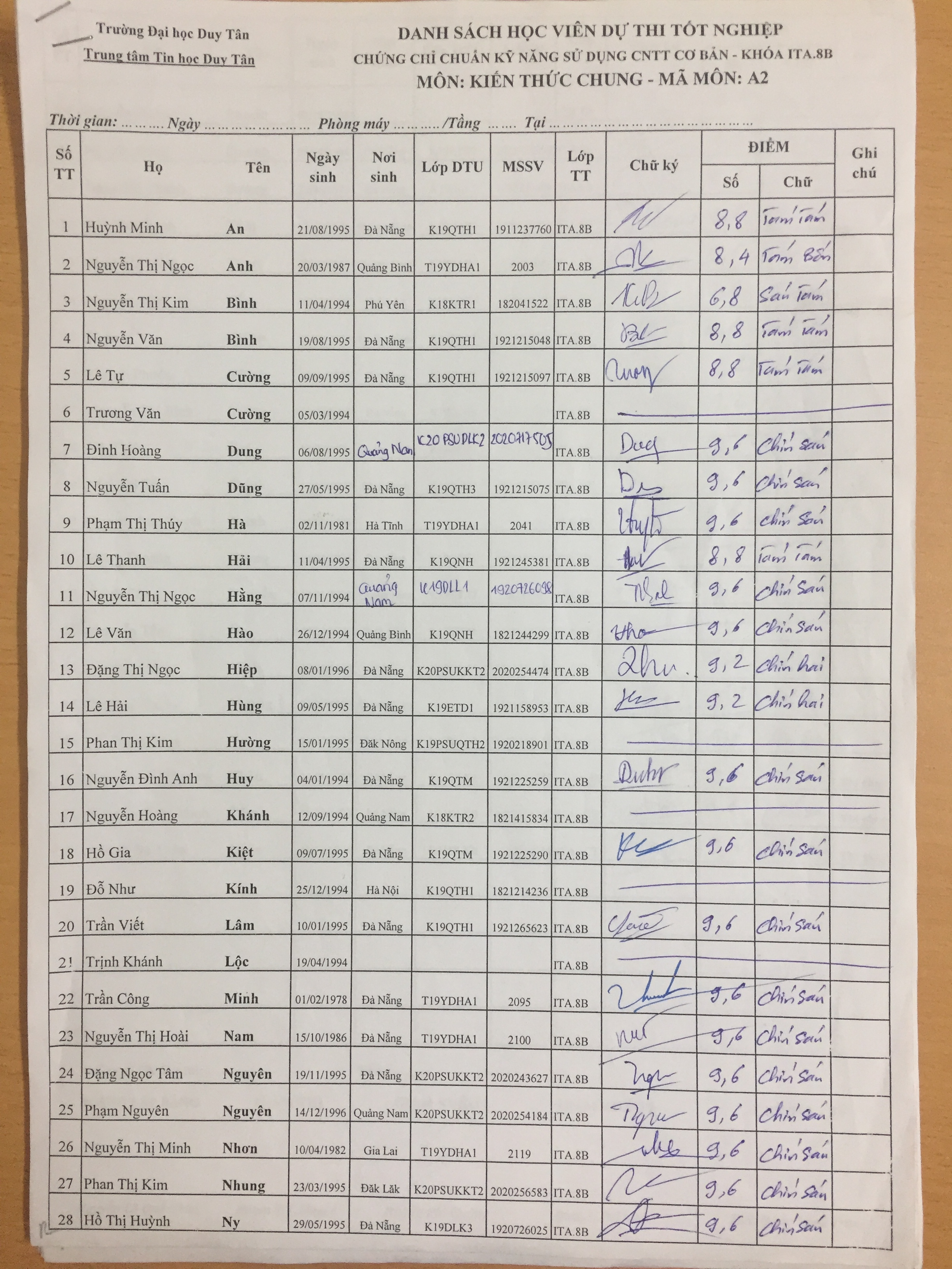 • Điểm thi