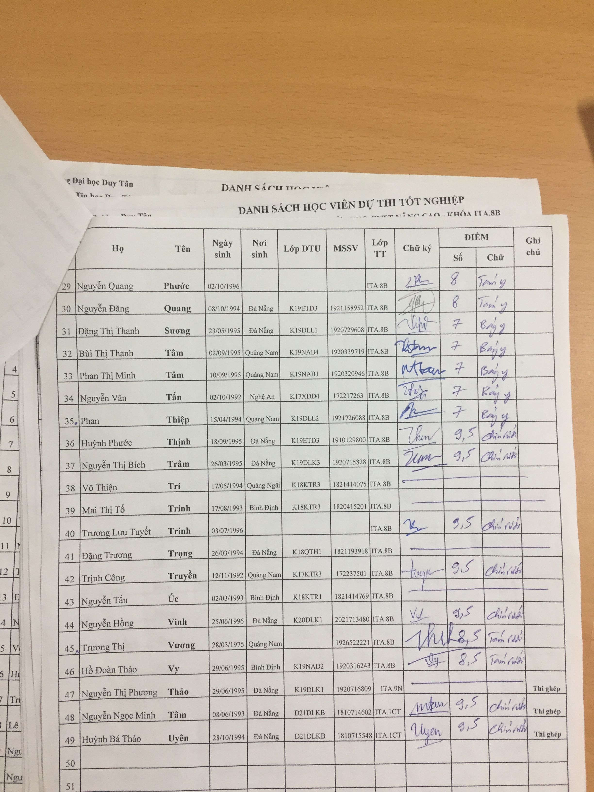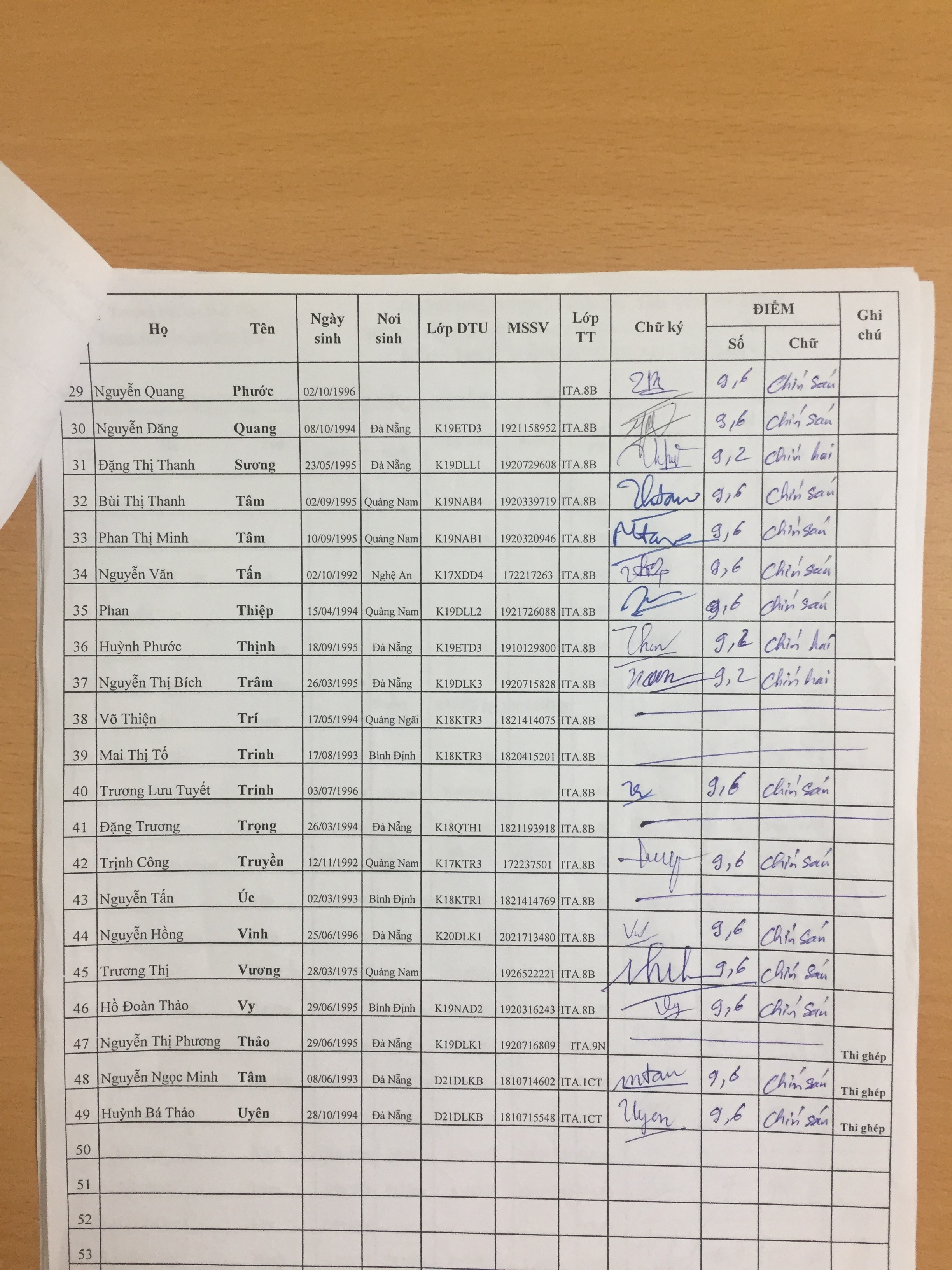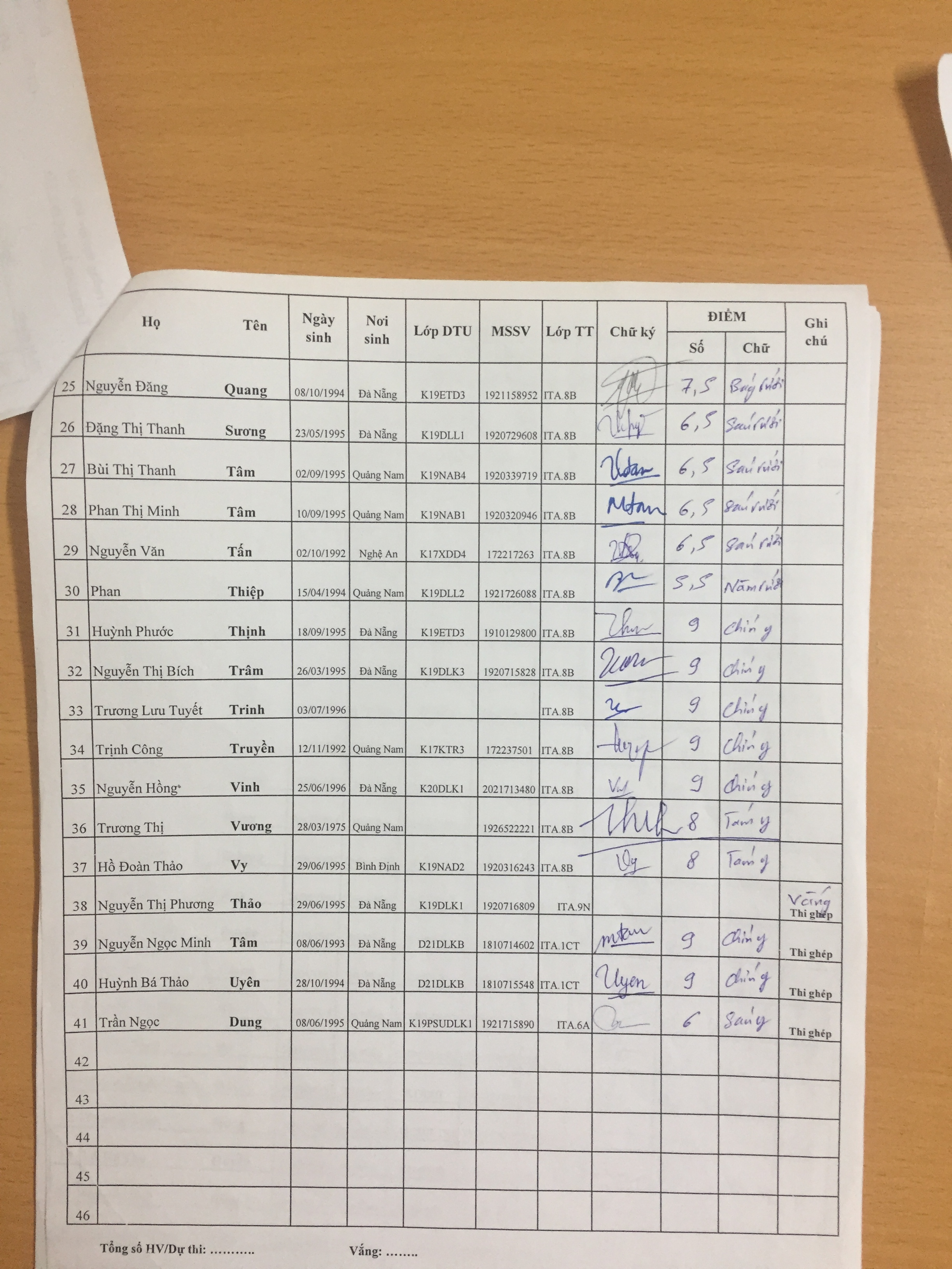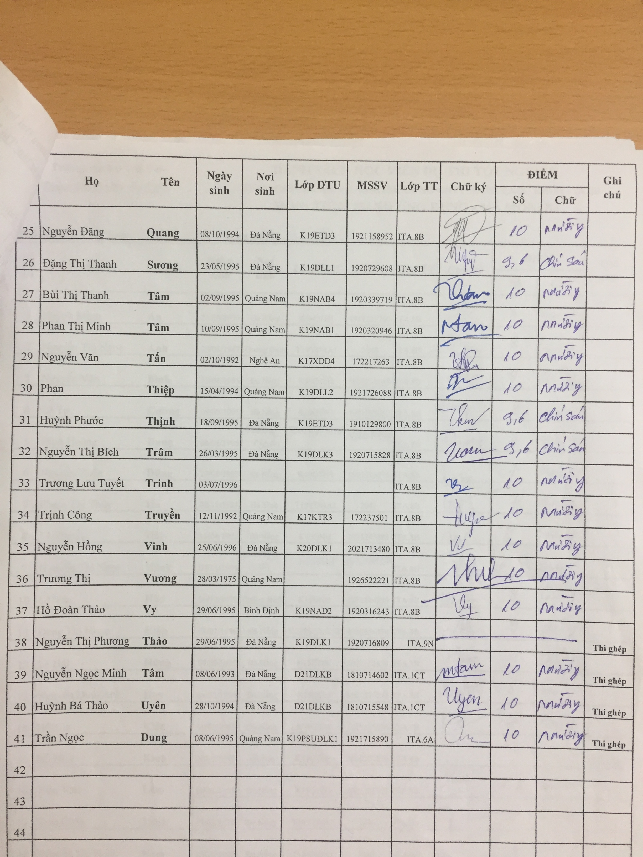• Danh sách thi