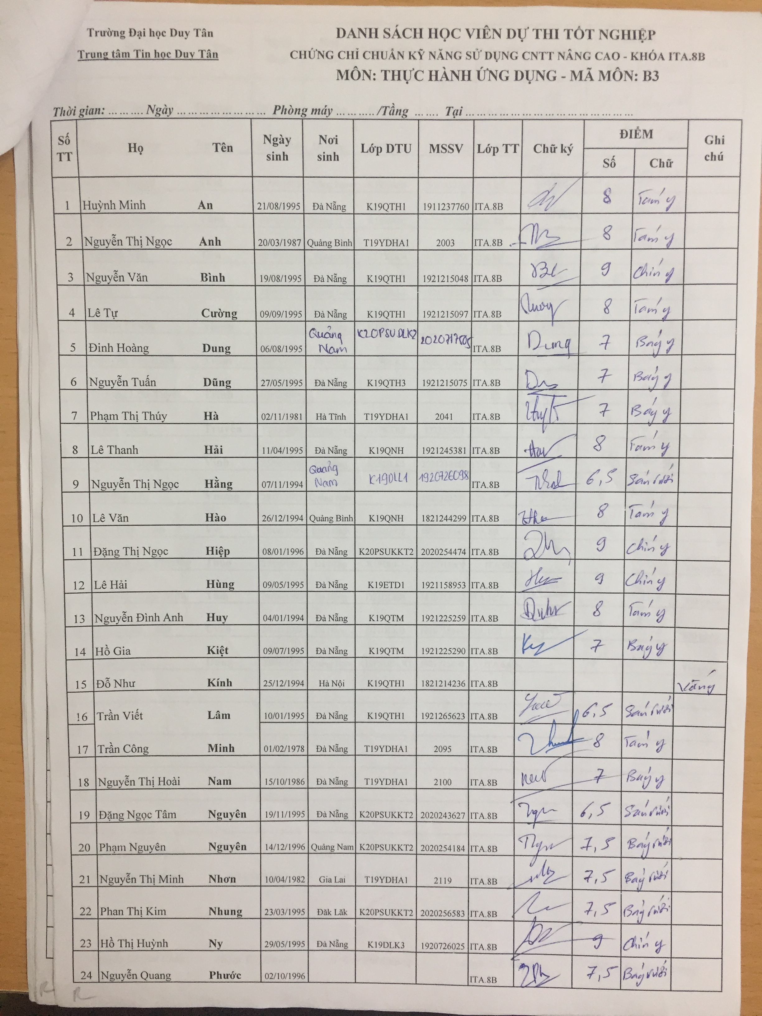 Điểm sát hạch Chứng chỉ Ứng dụng CNTT Nâng cao suất 15h00 ngày 25/01/2026