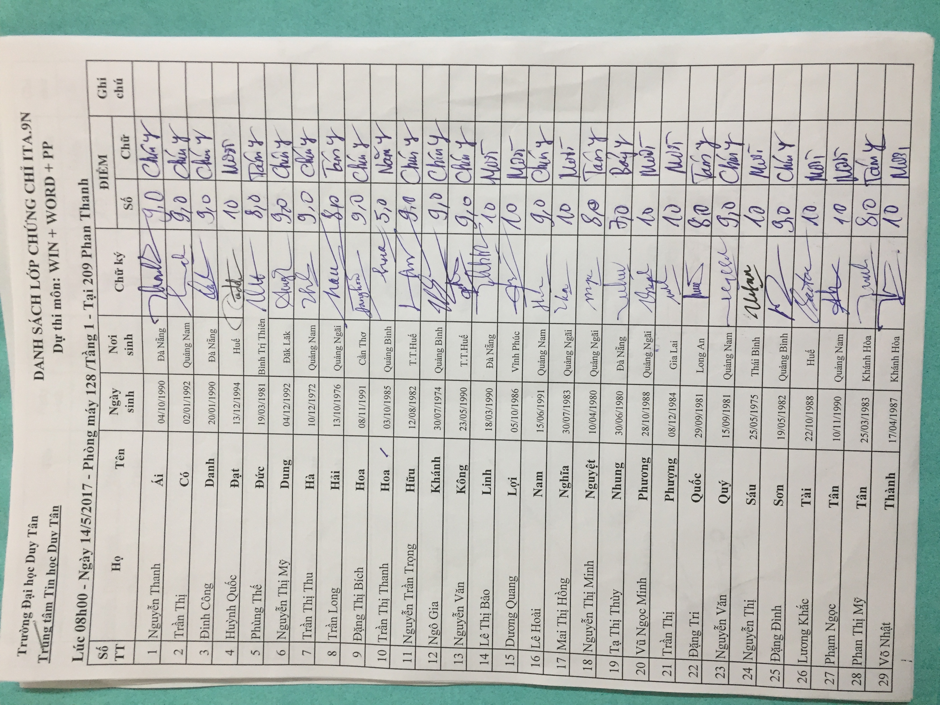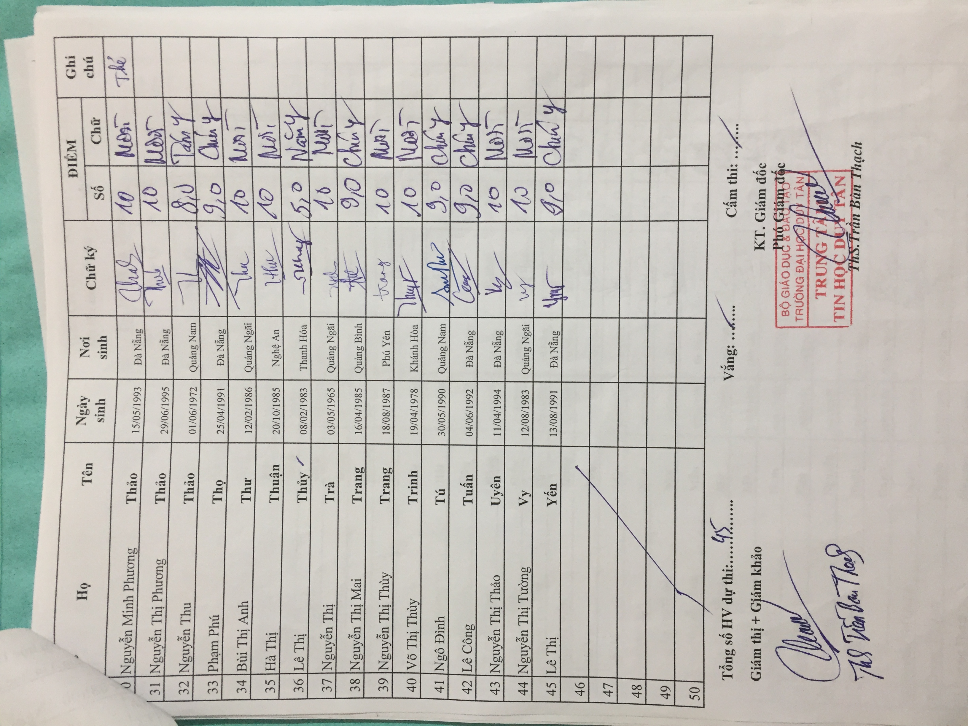 Điểm sát hạch Chứng chỉ Ứng dụng CNTT Nâng cao suất 15h00 ngày 25/01/2026