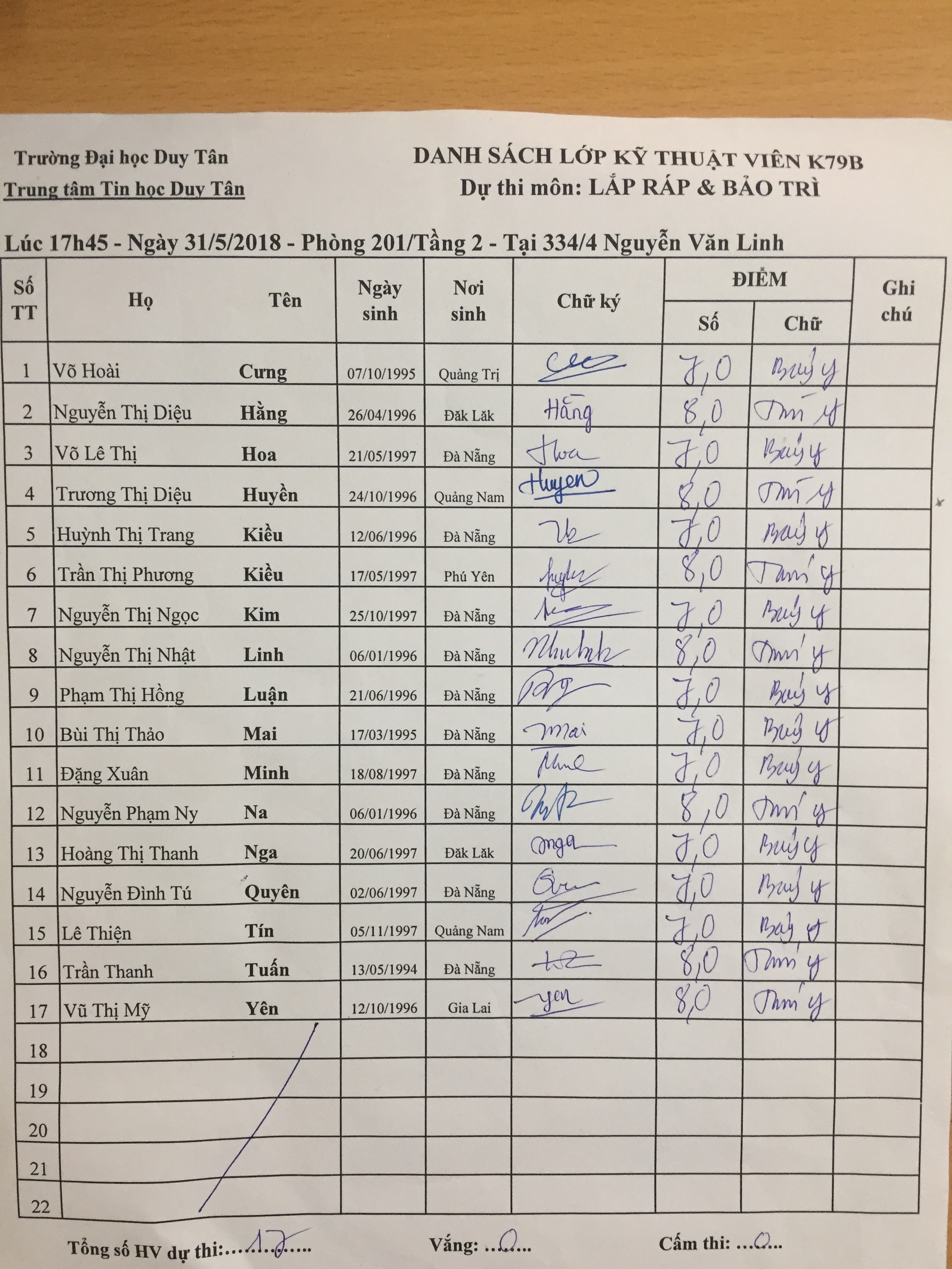 Danh sách thi