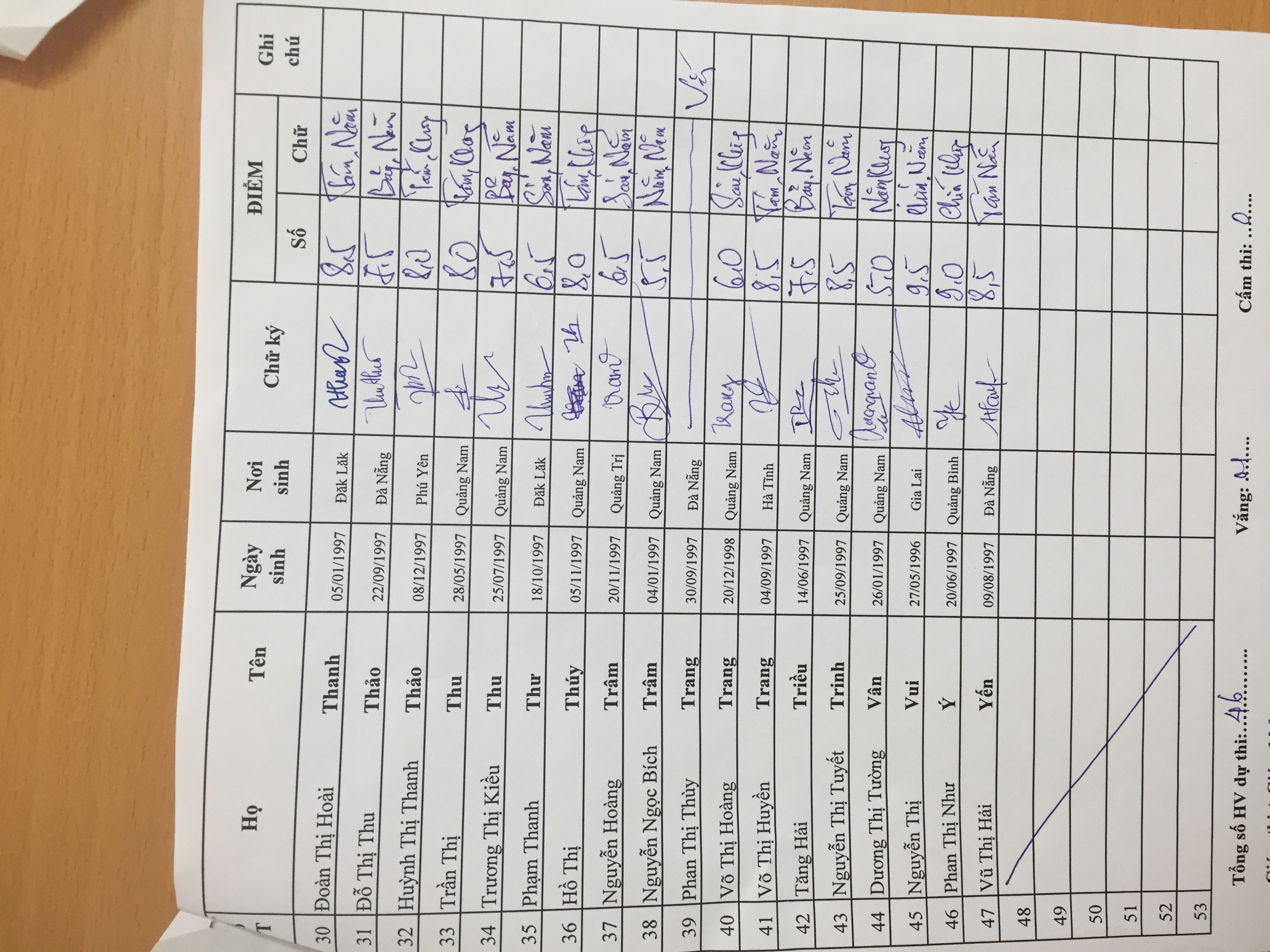 Danh sách thi