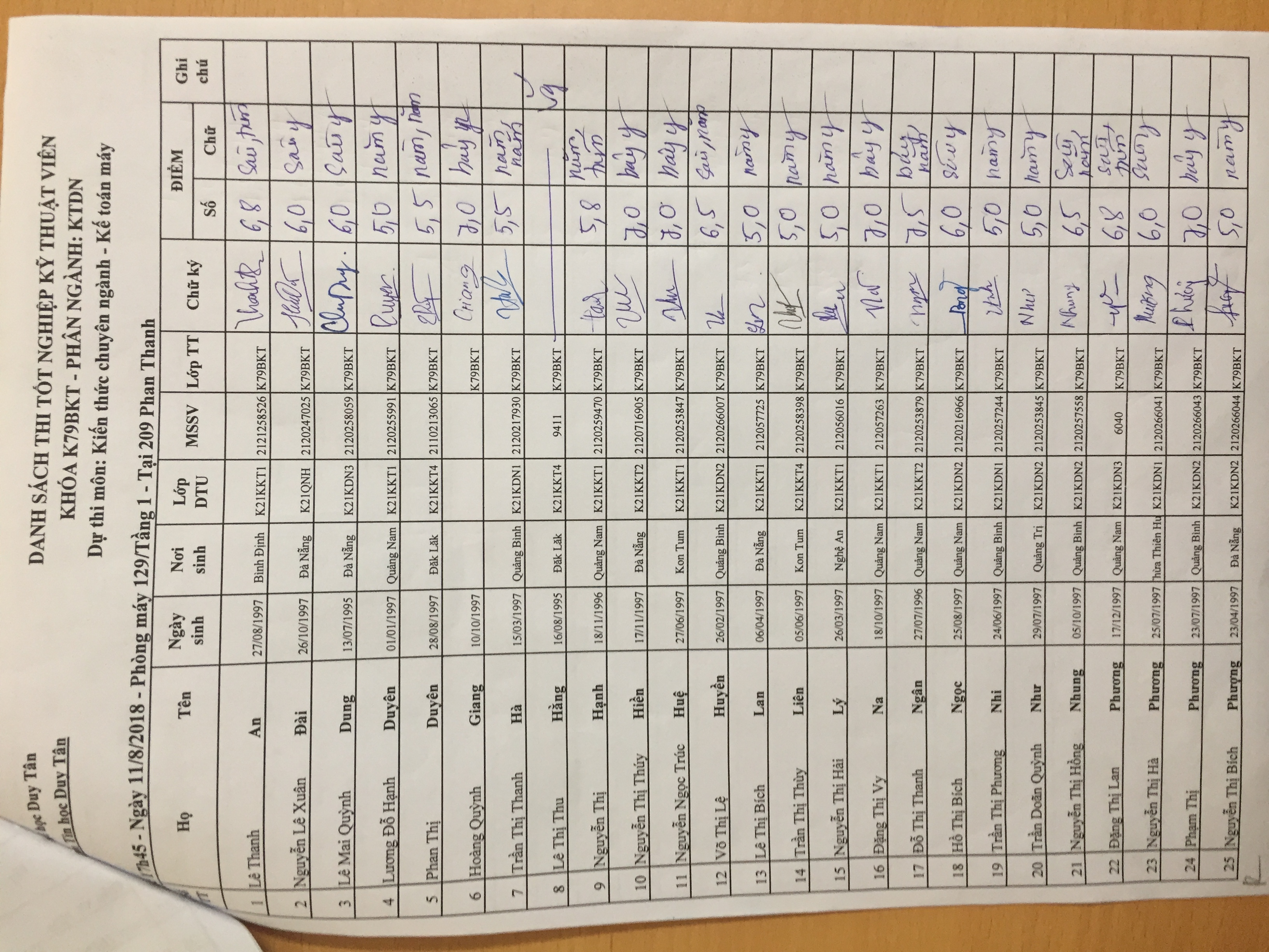 Danh sách thi